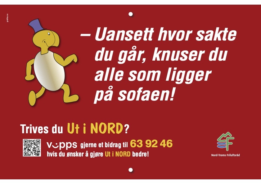 15. Det er gratis å være med i Ut i NORD. De som ønsker å gi et bidrag som gjør at arbeidet med stier, bord og benker, kasser og skilt blir bedre, kan vippse til 63 92 46 (f.eks. kr 10,- pr. gjennomført tur, grenset oppad til kr 200,-).